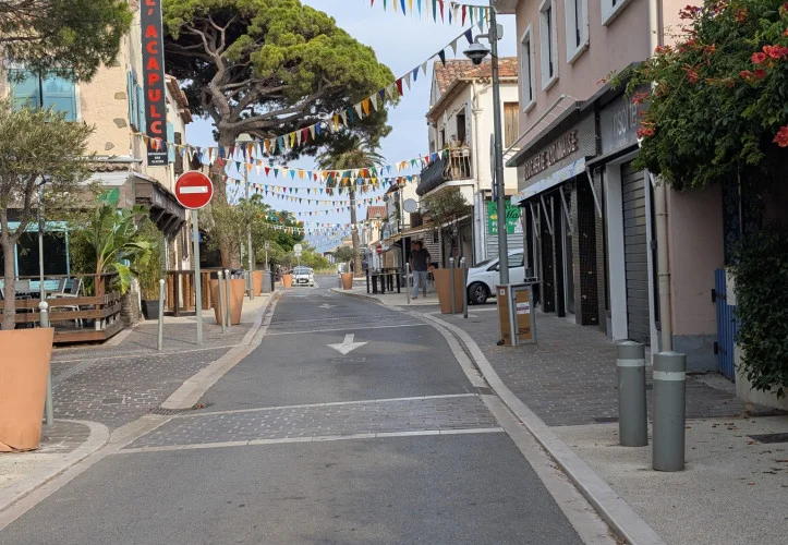 Située sur la commune d'Hyères (Var), on y accède par la route de Giens, ou par la route du sel, laquelle est fermée pendant l'hiver[]. Sur sa partie ouest se trouve la plage de l'Almanarre, longue de 4 km et constituée de sable et de petits galets. Au sud-ouest se trouve la Madrague. À l'est se trouvent le port d'Hyères et la plage de La Capte. Cette répartition des plages en place toujours l'une à l'abri des vents et l'autre face au vent, que l'on soit en régime de vents d'ouest ou d'est, ce qui permet la pratique du funboard, du kitesurf ou de la planche à voile.Toute la partie sud de l'île est composée de falaises et de forêts, mais abrite le petit port du Niel au sud, et celui de La Tour-Fondue au sud-est, qui permet de rejoindre l'île de Porquerolles par ferry. De part et d'autre de la presqu'île se trouvent à l'ouest le golfe de Giens et à l'est la rade d'Hyères.