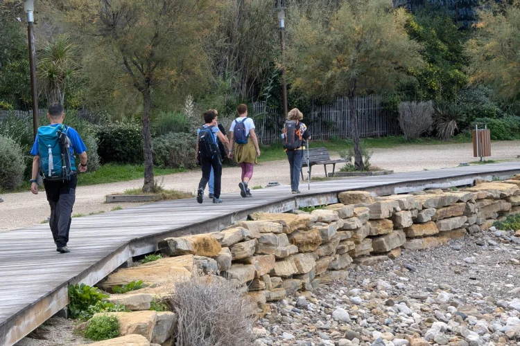 De nombreux sentiers littoraux sont des sentiers de grande randonnée largement fréquentés, par exemple dans la Manche, dans le Finistère et dans le Var. Ces portions sont surveillées et entretenues par plusieurs corps : communes, associations de riverains, Fédération française de randonnée pédestre… Alors qu'en 2015, l'observatoire du littoral évalue à 4 600 km de sentier du littoral ouverts sur les rivages métropolitains et près de 1 400 à ouvrir à moyen terme, en 2019, ce sont environ 5 800 km linéaires de sentier du littoral qui sont ouverts sur l'ensemble des côtes françaises (métropole et outre-mer), dont 1 530 km au titre de la servitude de passage des piétons. Près de 1 220 km de nouveaux linéaires de sentier seront ouverts à court terme ou sont à l'étude, ce qui portera le linéaire total à 7 020 km.
