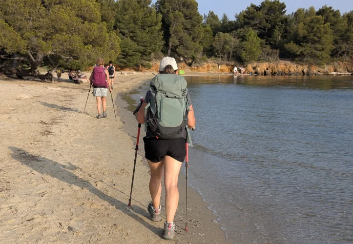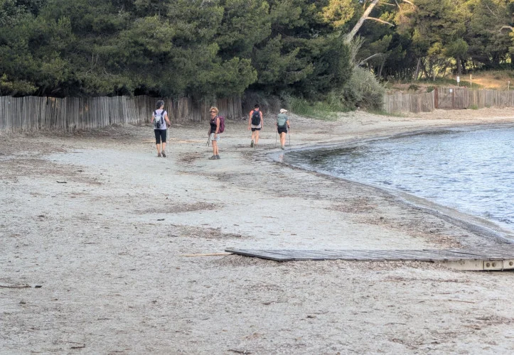 L’eau turquoise, peu profonde et sans grandes vagues, en fait un lieu idéal pour les enfants et ceux qui aiment se baigner en toute sérénité. Le paysage environnant, quant à lui, dévoile une vue magnifique sur les îles d’Hyères, notamment Porquerolles.